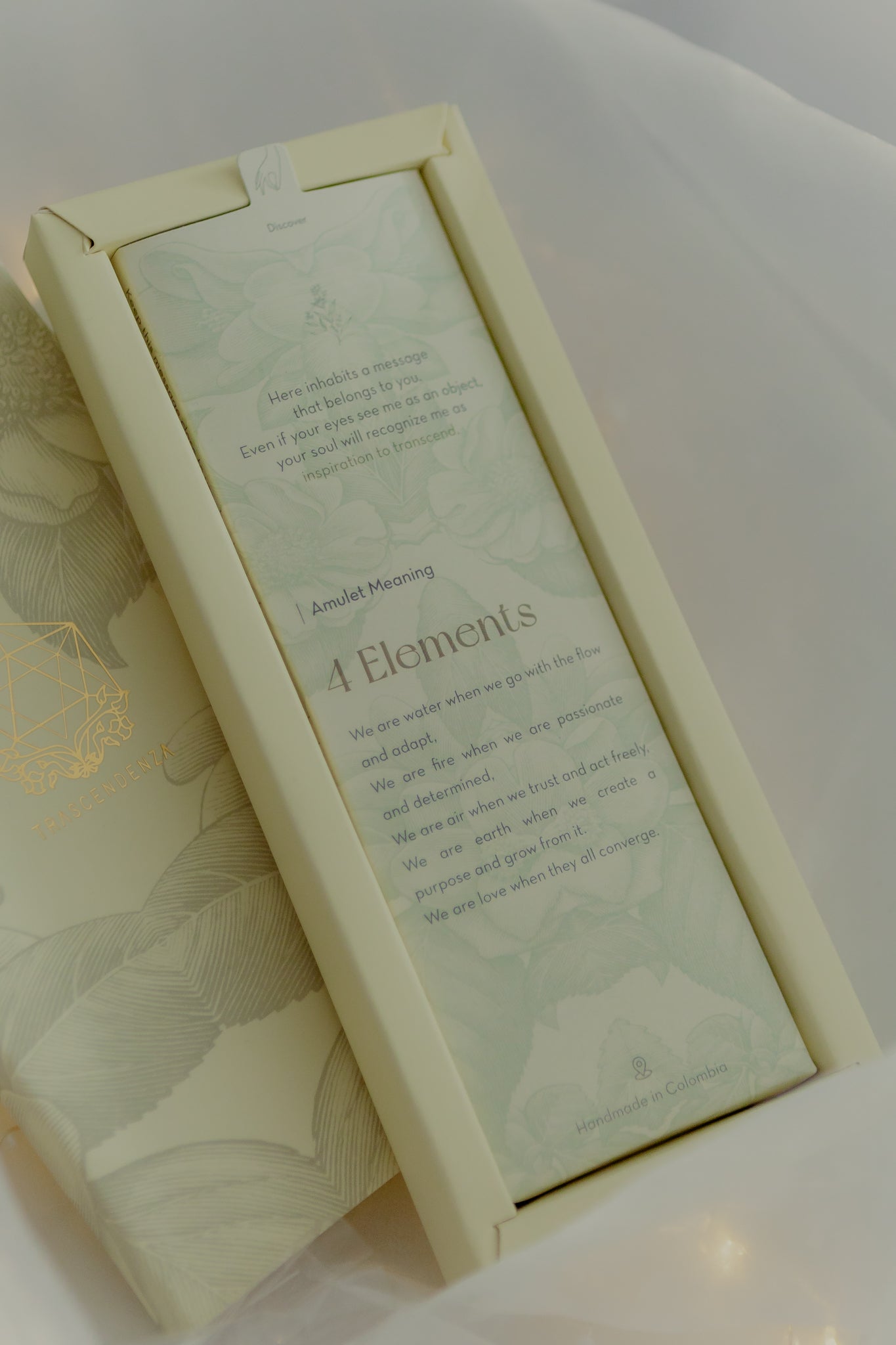 Amulet meaning: 4 Elements: We are water when we go with the flow and adapt, We are fire when we are passionate and determined, We are air when we trust and act freely, We are earth when we create a purpose and grow from it, We are love when they all converge.