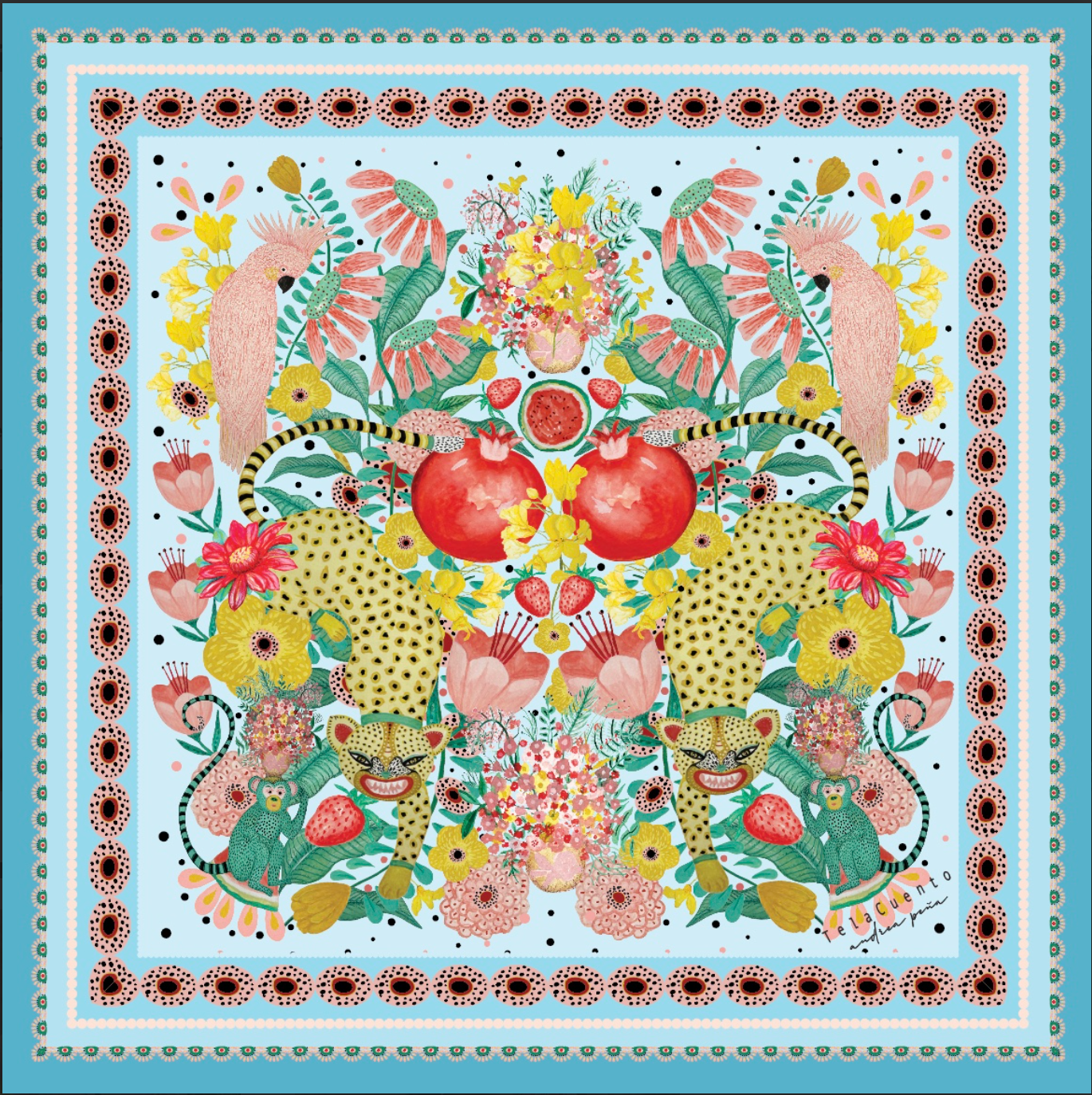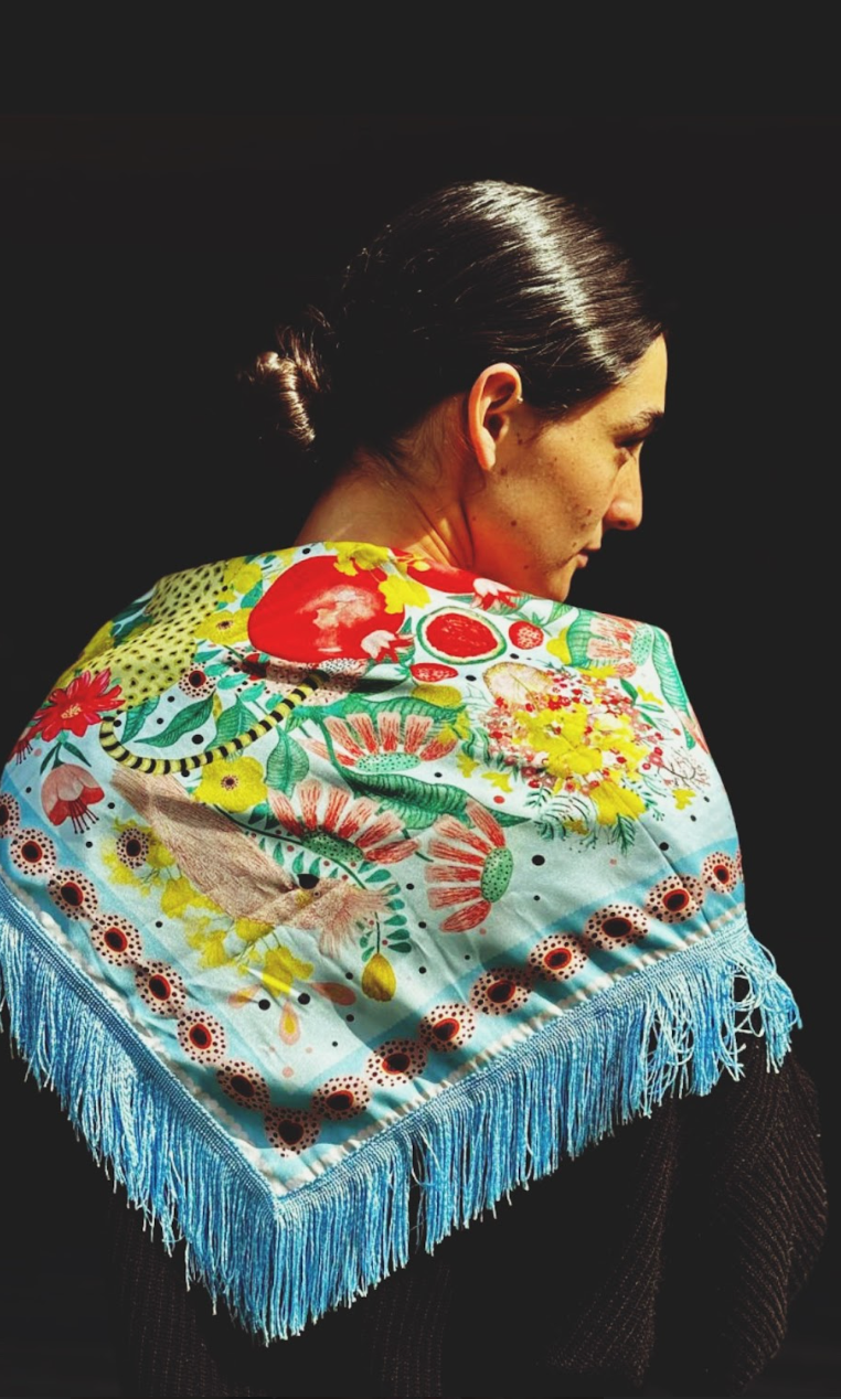 The Blue Scarf is a stunning accessory that blends artistic expression with versatile style. Featuring a soft blue background adorned with a vibrant tropical-inspired design, this scarf showcases exotic flora, fauna, and playful details such as leopards and parrots. The intricate print is framed with delicate blue fringe, adding texture and movement. Made from lightweight, high-quality fabric, it’s perfect for wearing as a scarf, shawl, or even a decorative piece. The Blue Scarf is a celebration of slow fashion, combining bold colors and artistic craftsmanship to elevate any look.