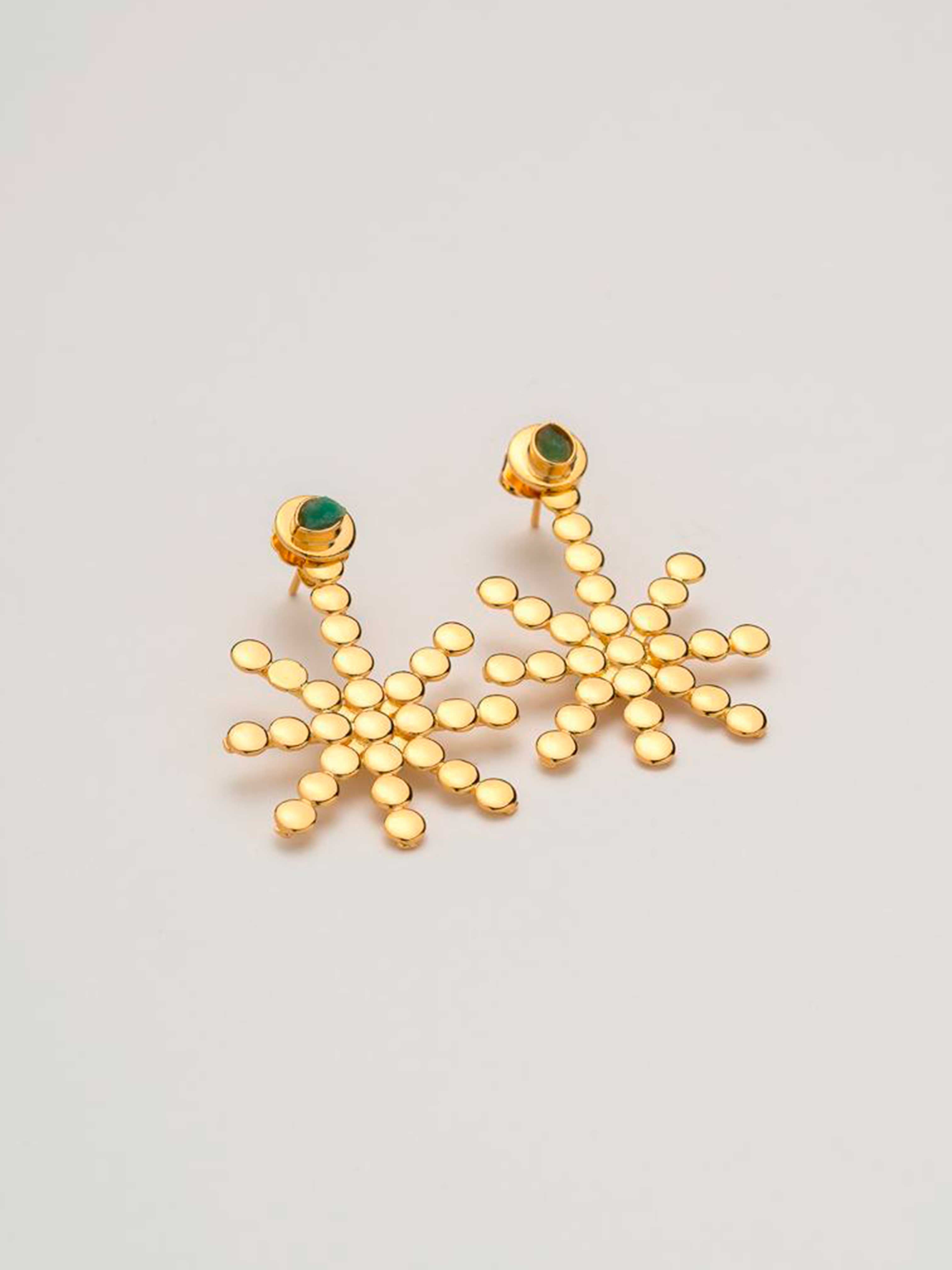The Brunella Earrings are the ultimate statement accessory for women who love to stand out. With their stunning starburst-inspired design and elegant gemstone accents, these earrings bring a unique and radiant flair to any outfit....