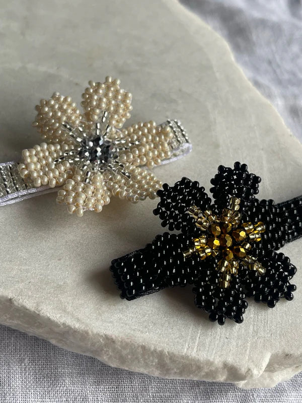 The Chocker MUN-006 is a stunning handcrafted accessory that exudes elegance and artisanal charm. Featuring intricate beaded floral designs, this piece is available in two striking variations: a classic pearl-white flower with silver accents and a bold black flower with golden details. Perfect for making a statement, this chocker blends traditional craftsmanship with modern sophistication. Whether worn as a centerpiece for a formal event or to elevate your everyday style, the Chocker MUN-006 is a timeless and versatile addition to your collection, honoring slow fashion and exquisite design.