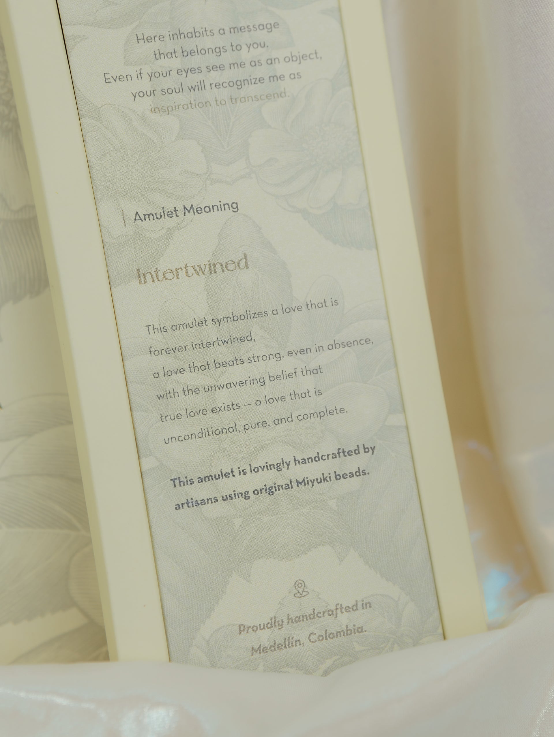 Amulet meaning: This amulet symbolizes a love that is forever intertwined, a love that beats strong, even in absence, with the unwavering belief that true love exists— a love that is unconditional, pure, and complete. This amulet is lovingly handcrafted by artisans using original Miyuki beads