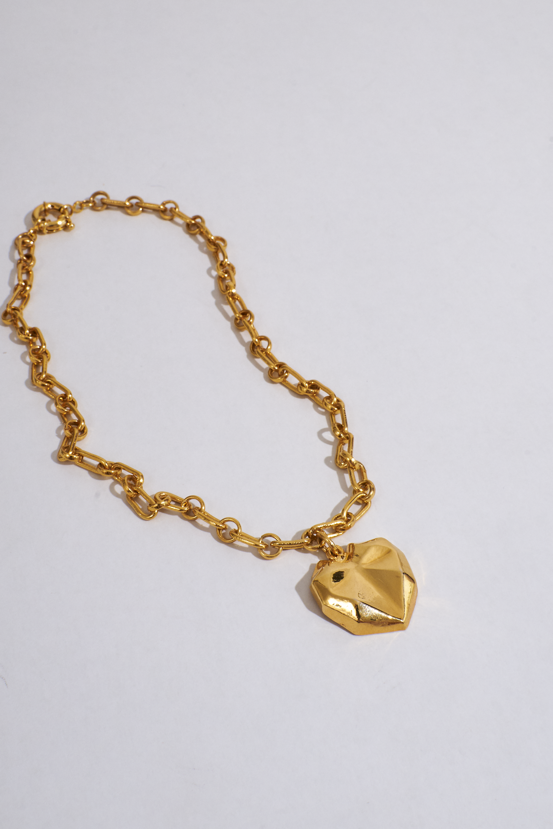 The Maxi Chocolate Necklace is a bold and sophisticated statement piece that exudes modern elegance. Featuring a chunky gold-tone chain, this necklace is adorned with a stunning faceted heart pendant, reminiscent of a luxurious chocolate design. Its intricate detailing and polished finish make it a standout accessory, perfect for elevating any outfit. Whether paired with a simple top for a touch of glamour or as the centerpiece of a formal look, the Maxi Chocolate Necklace is a versatile addition to your jewelry collection, celebrating bold design and timeless style.