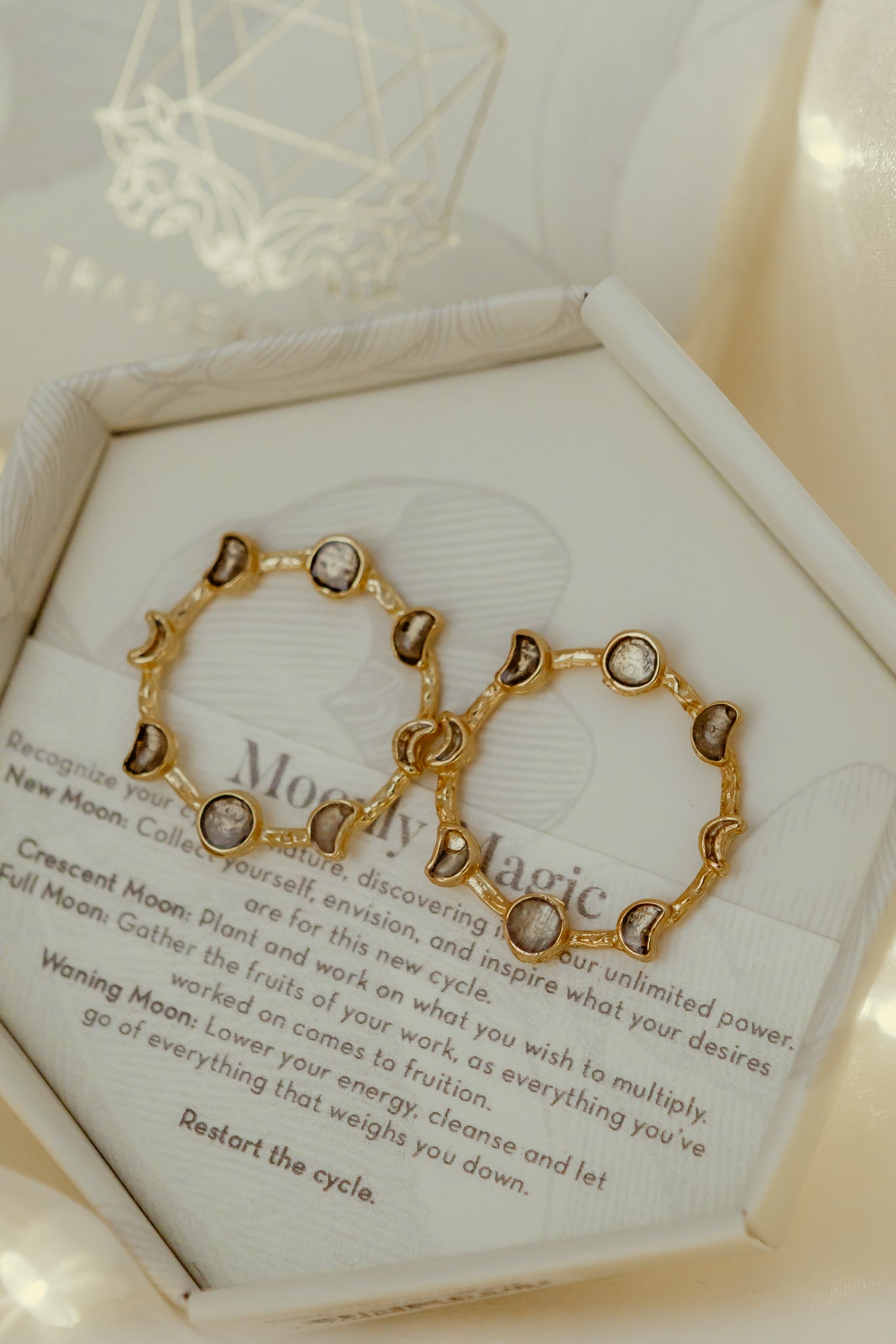 Amulet meaning: Recognize your cyclical nature, discovering in it your unlimited power: New Moon: Collect yourself, envision, and inspire what your desires are for this new cycle. Crescent Moon: Plant and work on what you wish to multiply. Full Moon: Gather the fruits of your work, as everything you’ve worked on comes to fruition. Waning Moon: Lower your energy, cleanse and let go of everything that weighs you down. Restart the cycle.