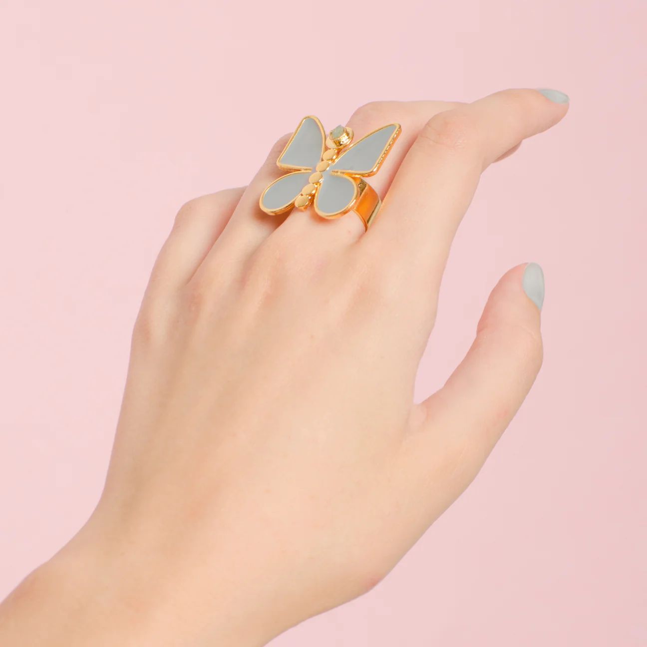 Salome Butterfly Collection Colombian Raw Emerald & 24k Gold Plated Big Ring