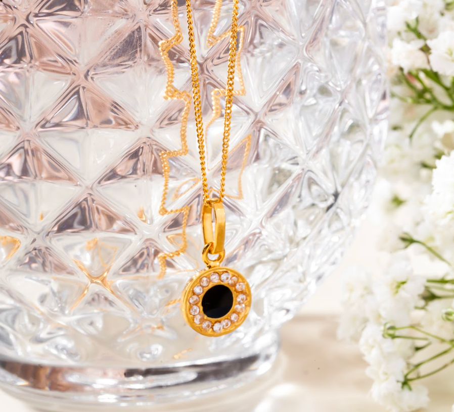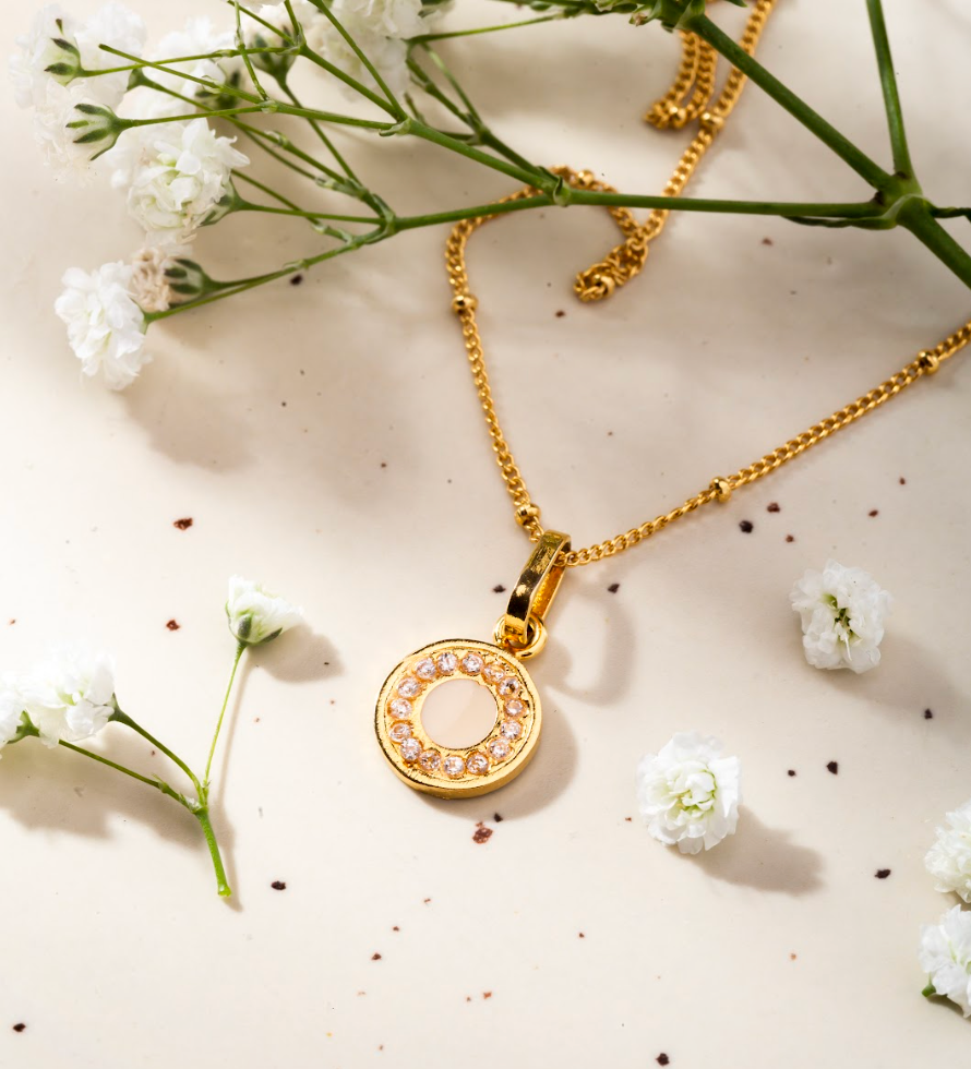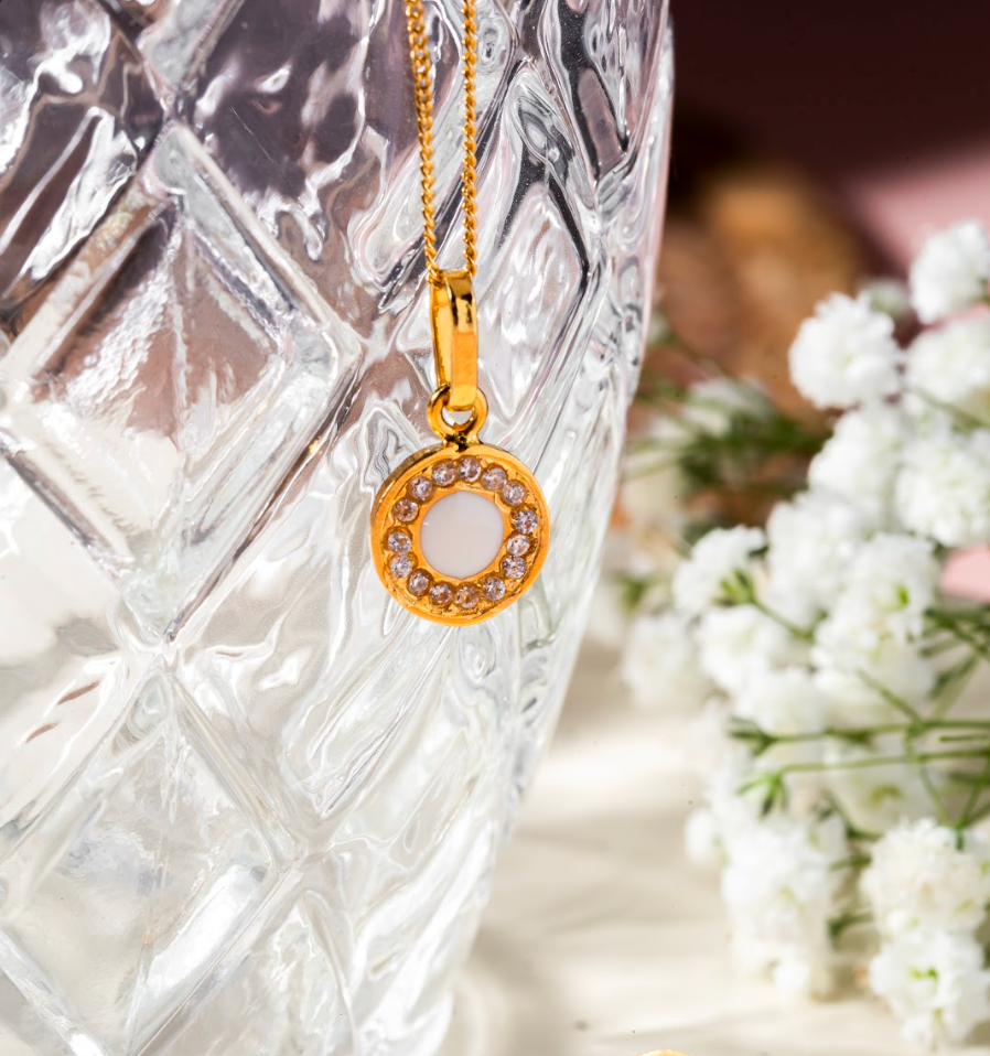 The Rebirth Necklace embodies timeless elegance and meaning. Available in two distinct designs—featuring a luminous white center or a bold black centerpiece—this handcrafted pendant celebrates renewal and balance. Its circular design, adorned with delicate crystal accents, represents the cyclical nature of life, making it a meaningful addition to any jewelry collection. Perfect for everyday wear or special occasions, the Rebirth Necklace is an ethical, slow fashion piece that combines artisan expertise with versatile sophistication.