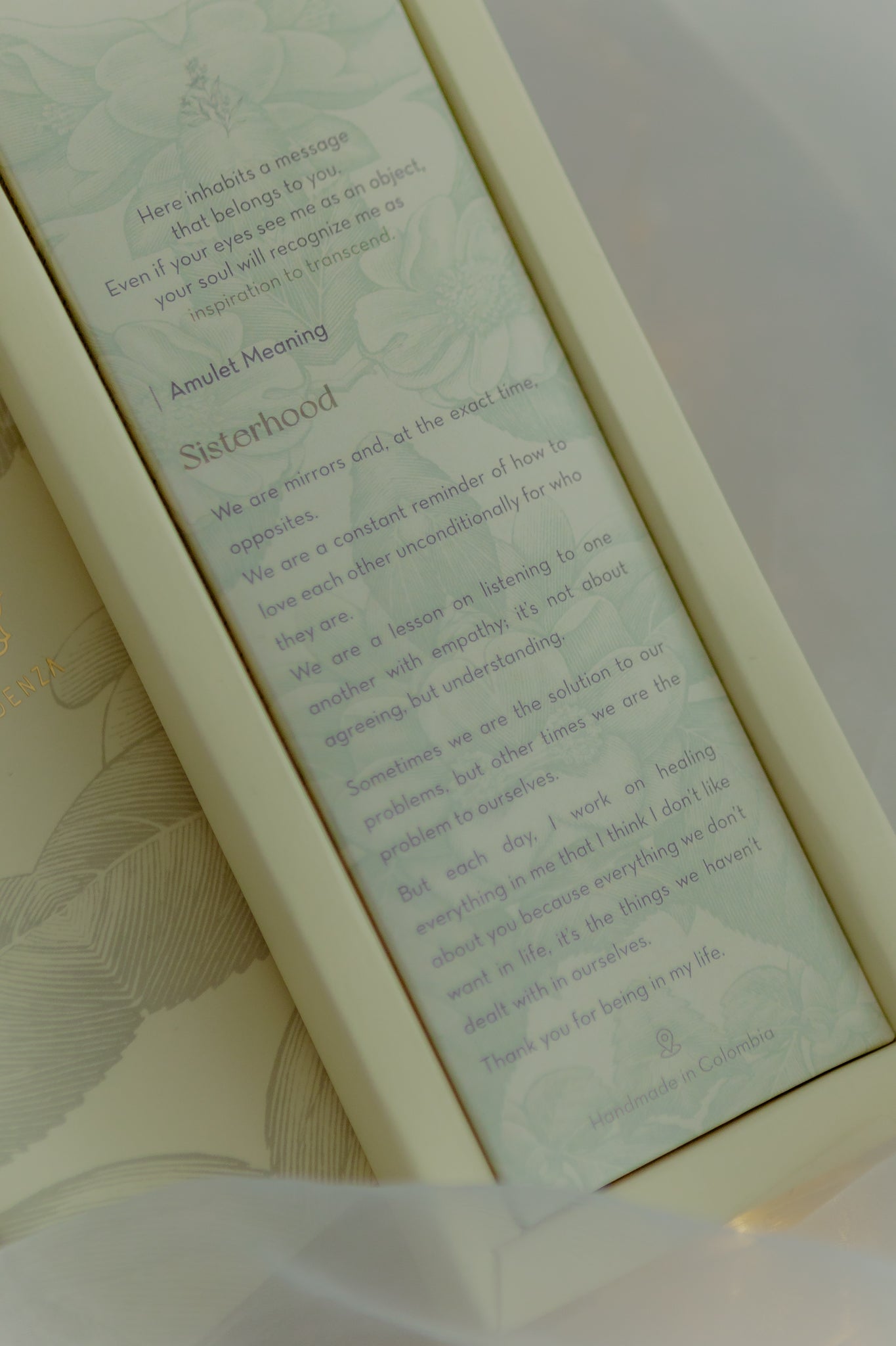 Amulet meaning: We are mirrors and, at the exact time, opposites. We are a constant reminder of how to love each other unconditionally for who they are. We are a lesson on listening to one another with empathy; it’s not about agreeing, but understanding. Sometimes we are the solution to our problems, but other times we are the problem to ourselves. But each day, I work on healing everything in me that I think I don’t like about you, because everything we don’t want in life, it’s the things we haven’t dealt within ourselves. Thank you for being in my life.