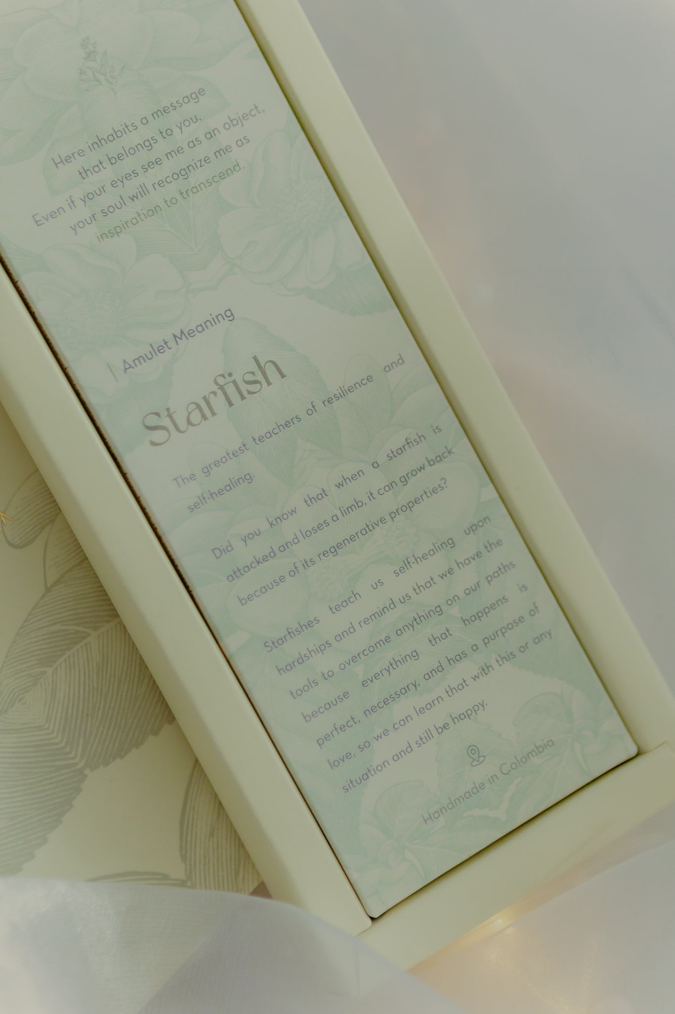 Amulet meaning: The greatest teachers of resilience and self-healing. Did you know that when a starfish is attacked and loses a limb, it can grow back because of its regenerative properties? Starfish teach us self-healing upon hardships and remind us that we have the tools to overcome anything on our paths because everything that happens is perfect, necessary, and has a purpose of love, so we can learn that regardless of the situation, we can still choose to be happy.
