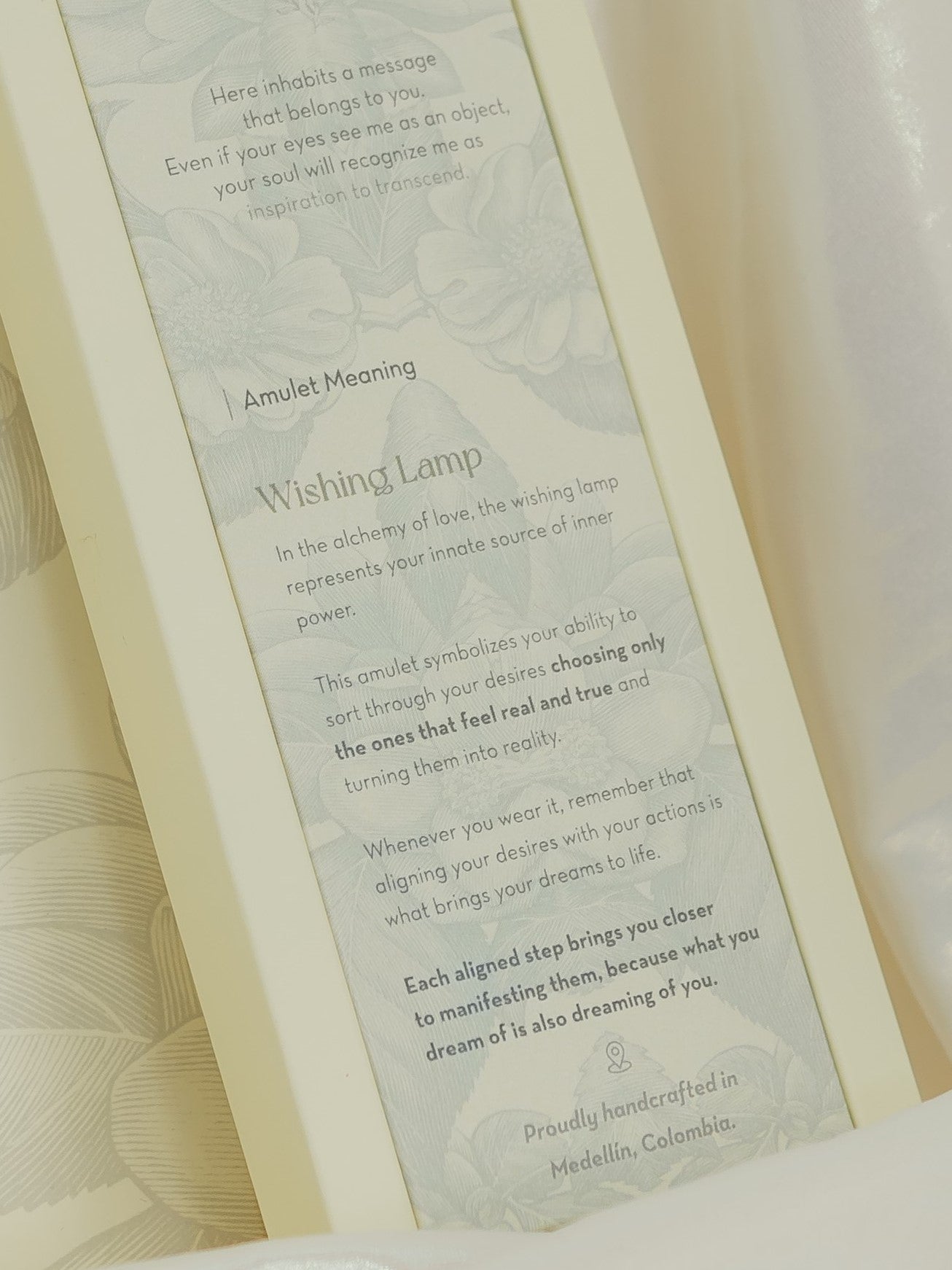 Amulet meaning: In the alchemy of love, the wishing lamp represents your innate source of inner power. This amulet symbolizes your ability to sort through your desires choosing only the ones that feel real and true, and turning them into reality. Whenever you wear it, remember that aligning your desires with your actions is what brings your dreams to life. Each aligned step brings you closer to manifesting them, because what you dream of, is also dreaming of you.