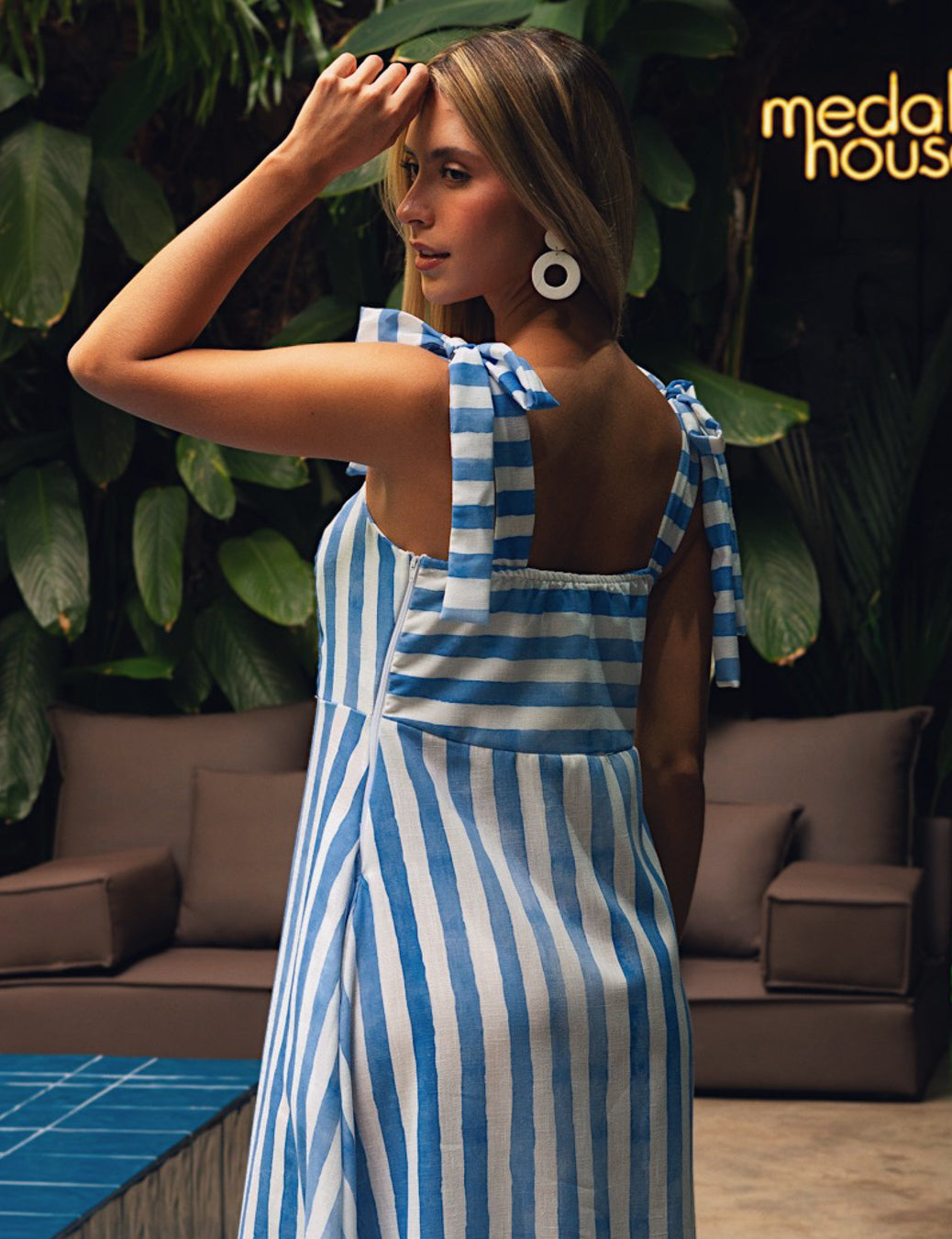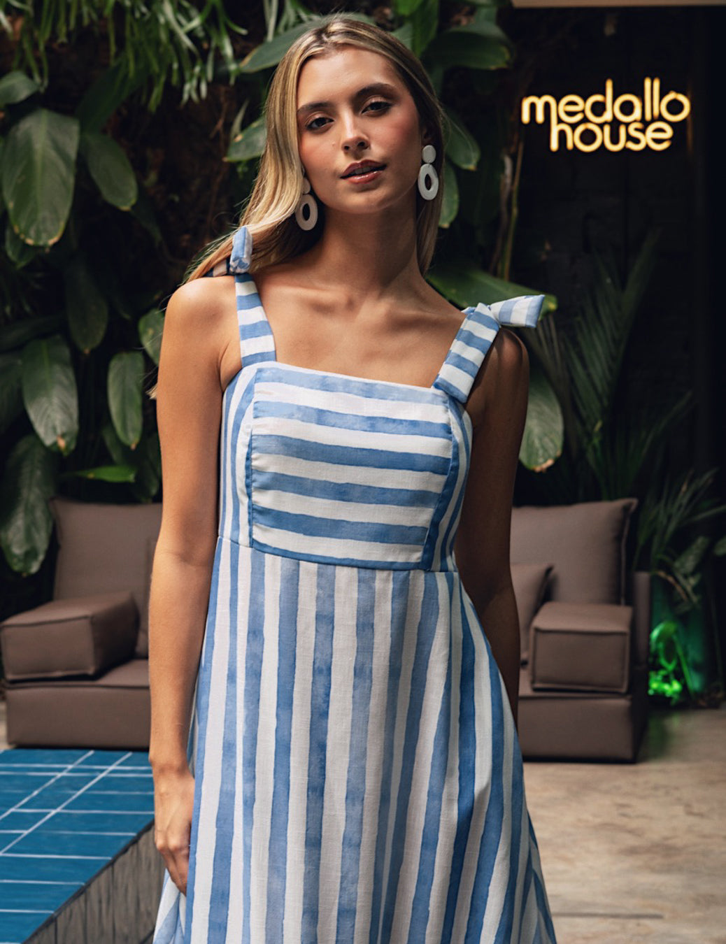 The Mazatlán Striped Dress is your go-to piece for effortless elegance and comfort. With its fresh blue-and-white striped pattern and breezy silhouette, this dress is perfect for warm, sunny days. Crafted from lightweight, breathable fabric, it blends freshness with sophistication, making it ideal for both casual outings and classy seaside dinners. Its timeless design ensures you’ll look chic and feel comfortable no matter the occasion.