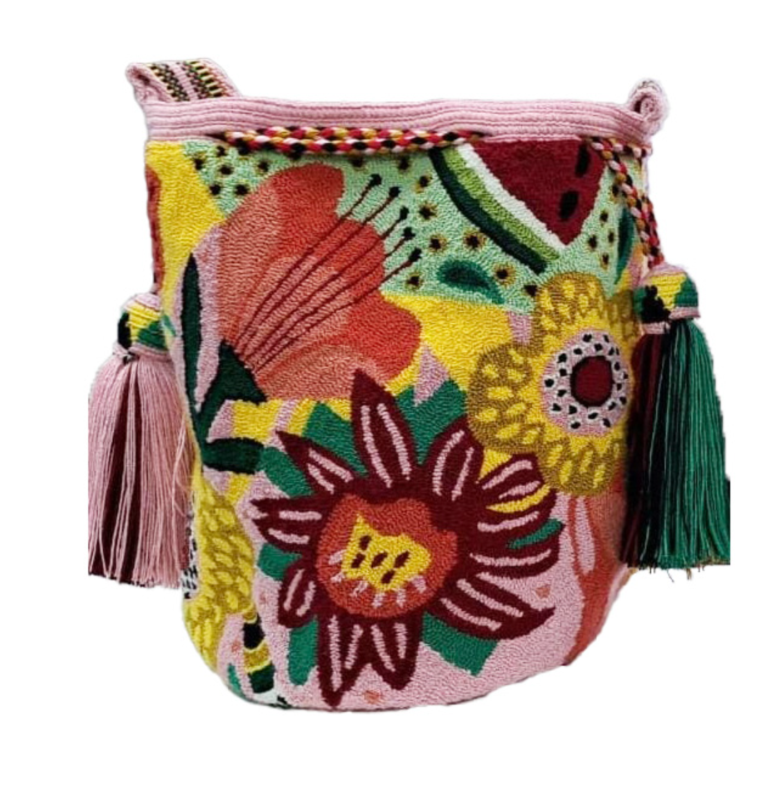 The Large Upholstered Fruit Backpack is a vibrant and functional accessory that combines bold design with artisan craftsmanship. Made with meticulous attention to detail, this spacious backpack features a colorful fruit and floral pattern that showcases tropical-inspired artistry. The soft, upholstered texture adds a luxurious feel, while the braided straps and playful tassel details enhance its charm. Perfect for carrying your essentials in style, this backpack is both practical and eye-catching, making it ideal for casual outings, travel, or everyday use. Celebrate slow fashion with this unique and artistic piece.