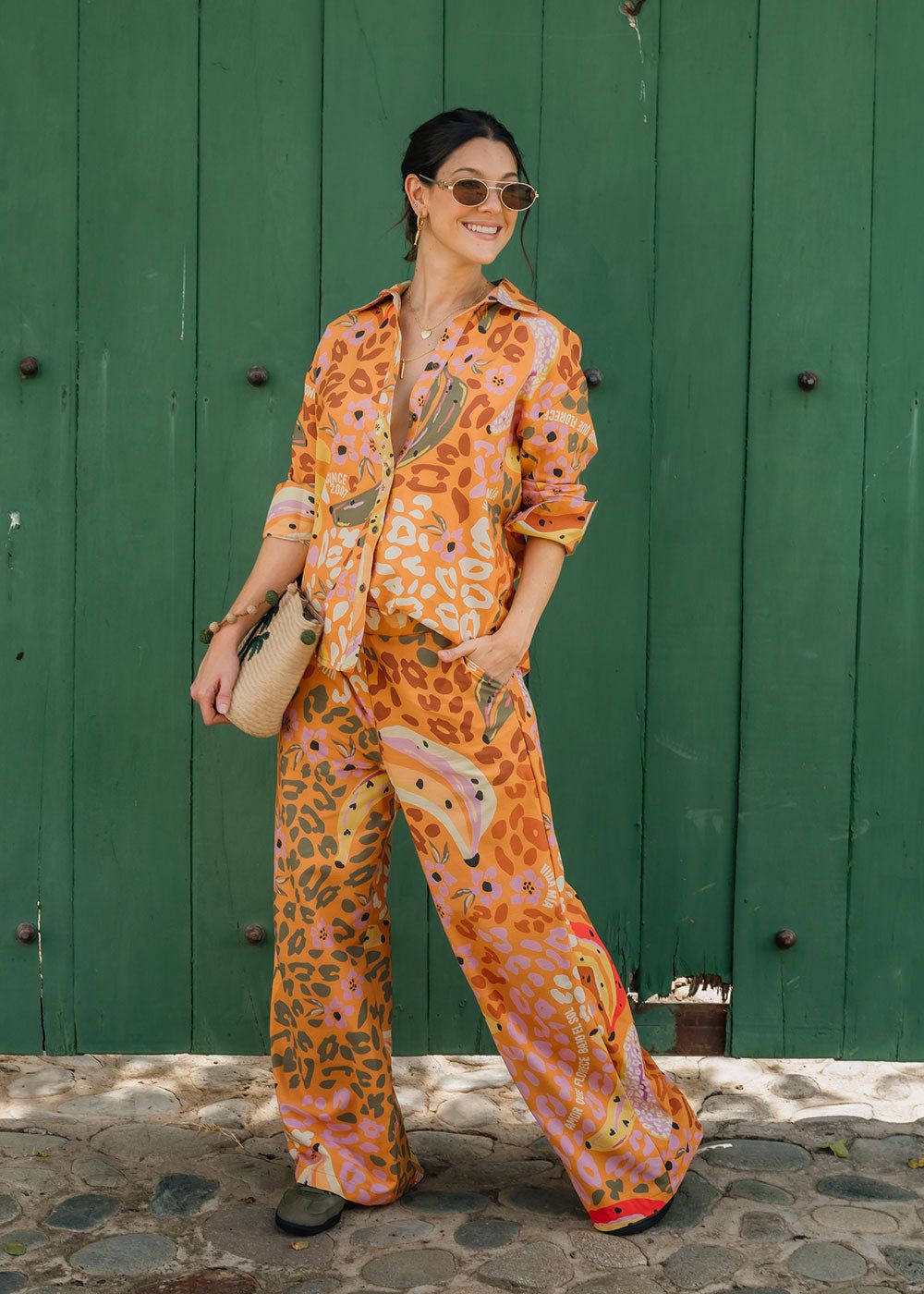 Athenea is a wide-leg linen-effect pant with an all-over animal print. Designed with a comfortable elastic back waistband and functional side pockets.