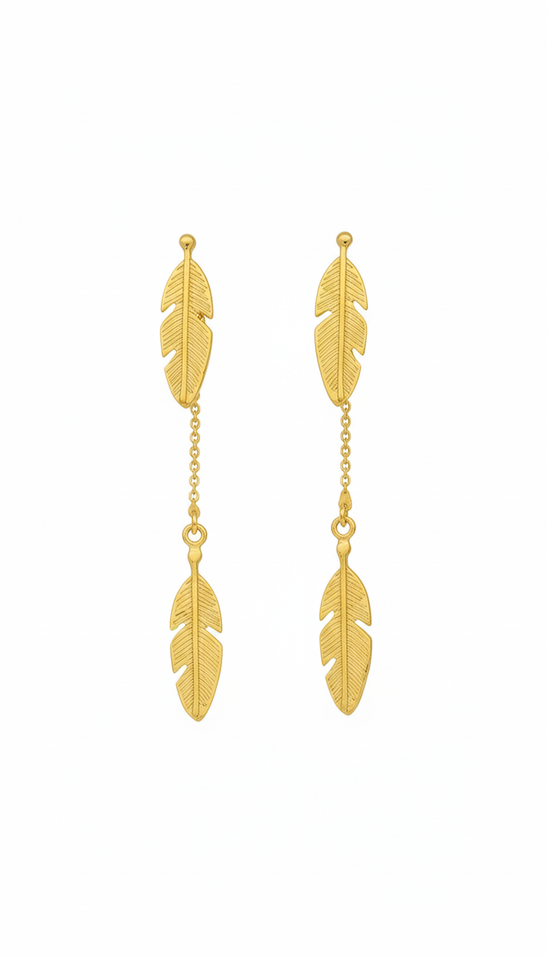 Lightness and Grace in Every Glimmer Discover the enchanting "Golden Feather Flow" drop earrings, a testament to delicate design and exquisite craftsmanship. These stunning earrings feature a unique two-tier feather motif, connected by a graceful...