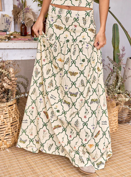 Lavenda Printed Linen Maxi SkirtFlowy and elegant, this printed linen maxi skirt features a wide waistband with a side zipper and a gathered lower panel for added volume and movement. Its semi-fitted silhouette makes it...