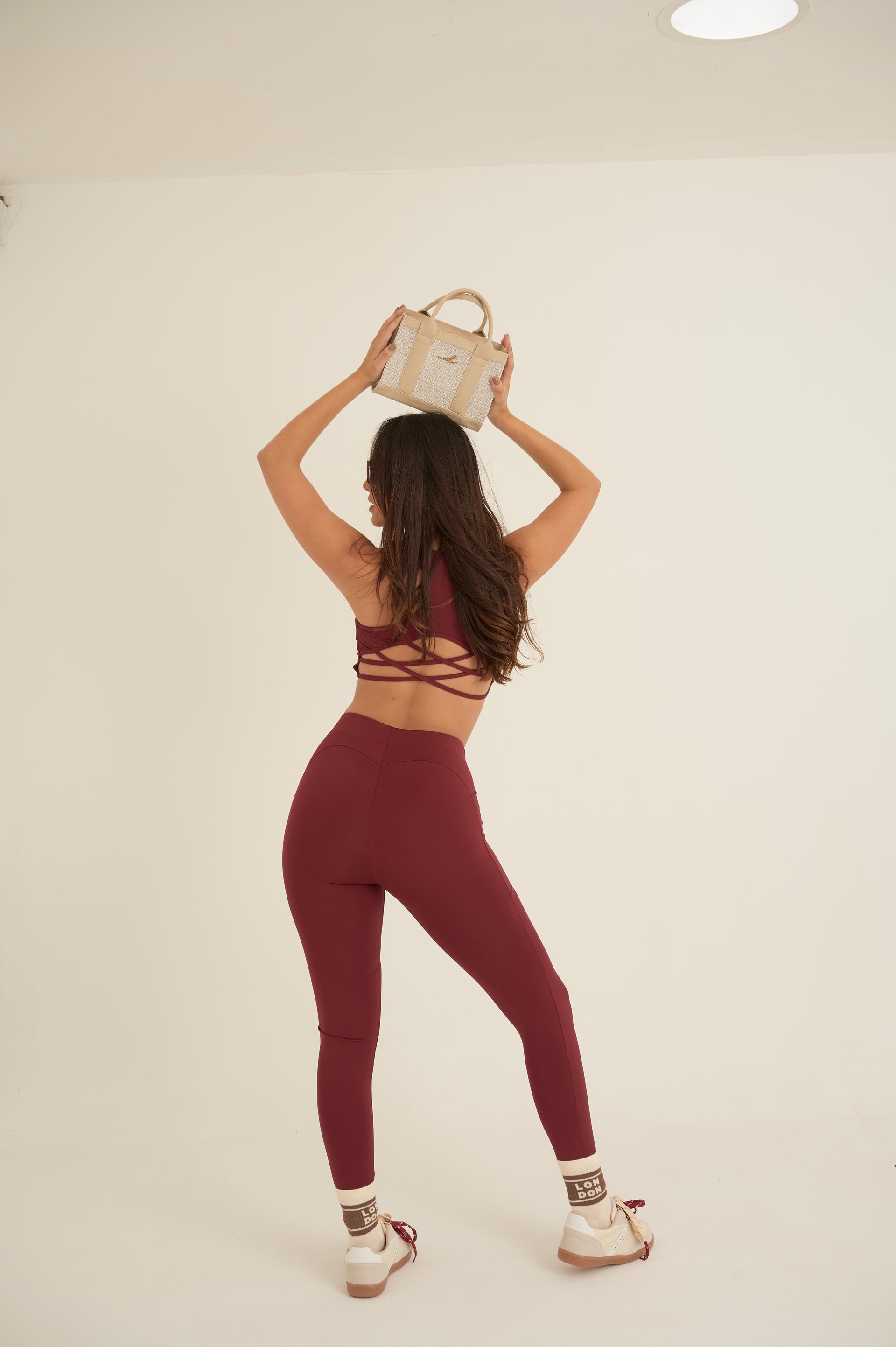Luxury Details: Signature gold-tone script logo and polished hardware.
