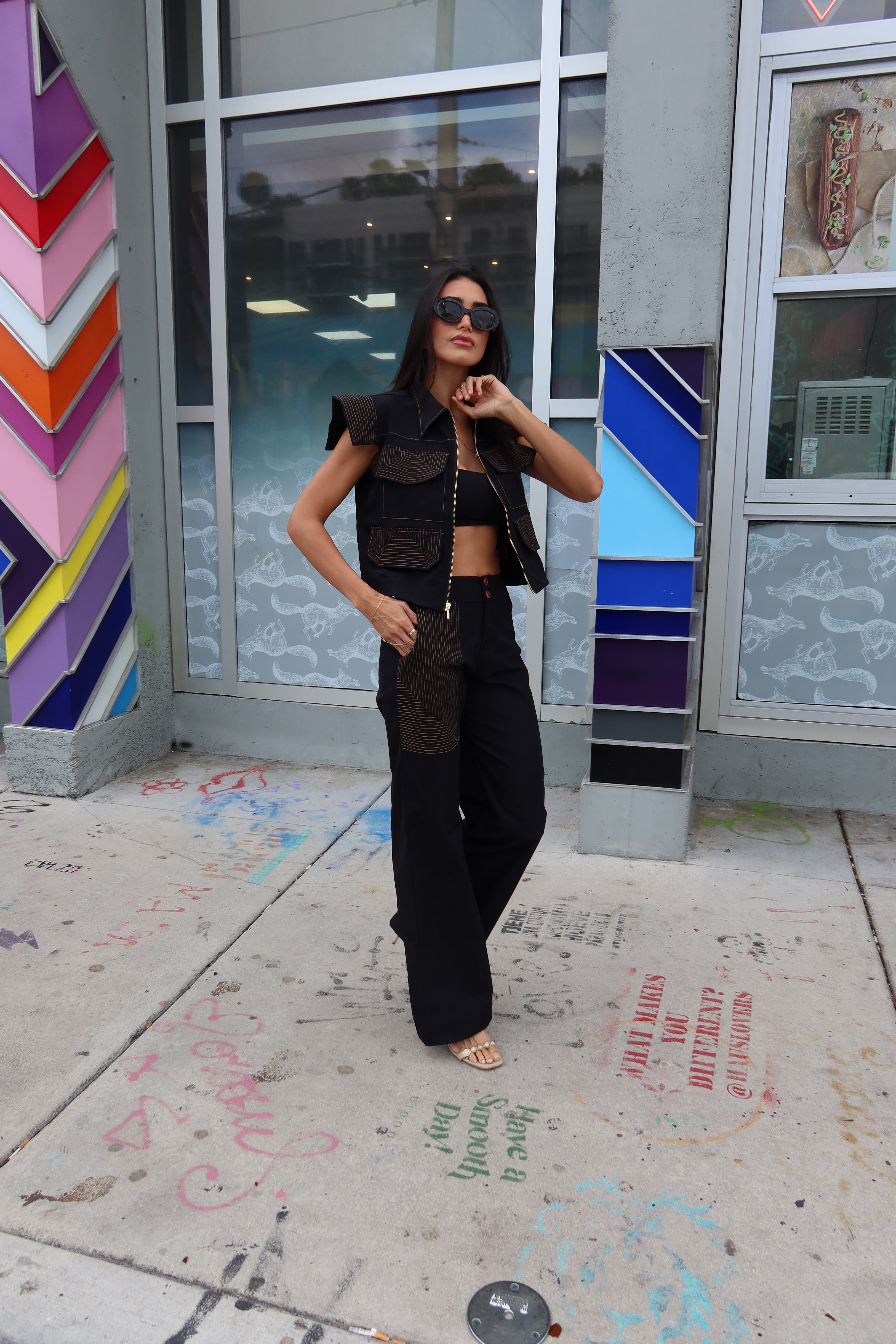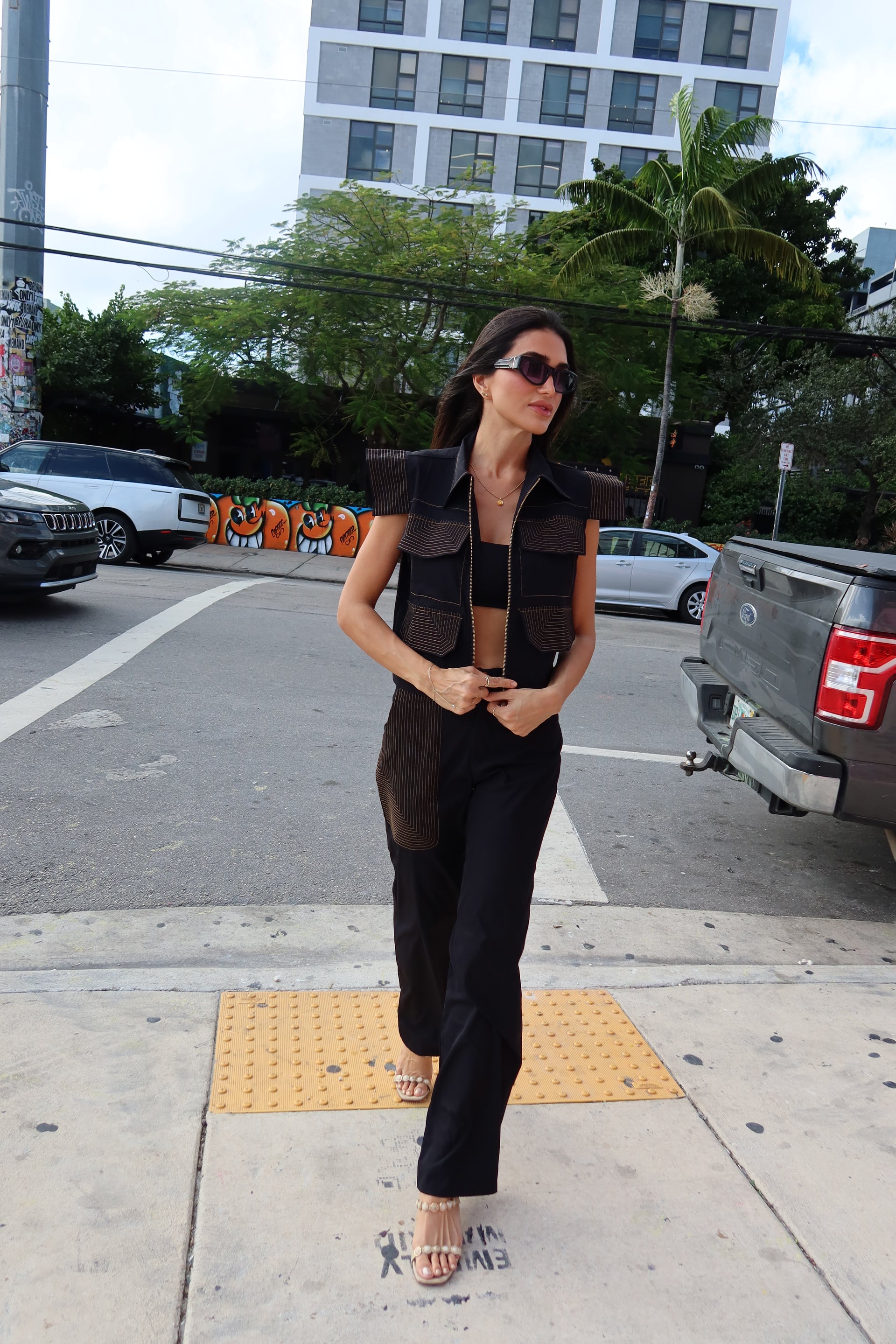 The Vertex Pants are a refined essential designed with precision and confidence. Featuring a high-waisted silhouette and clean, straight-leg cut, these pants offer a flattering, elongated fit that moves effortlessly from day to night. The structured yet fluid fabric provides comfort while maintaining a polished, tailored look.