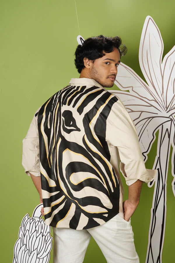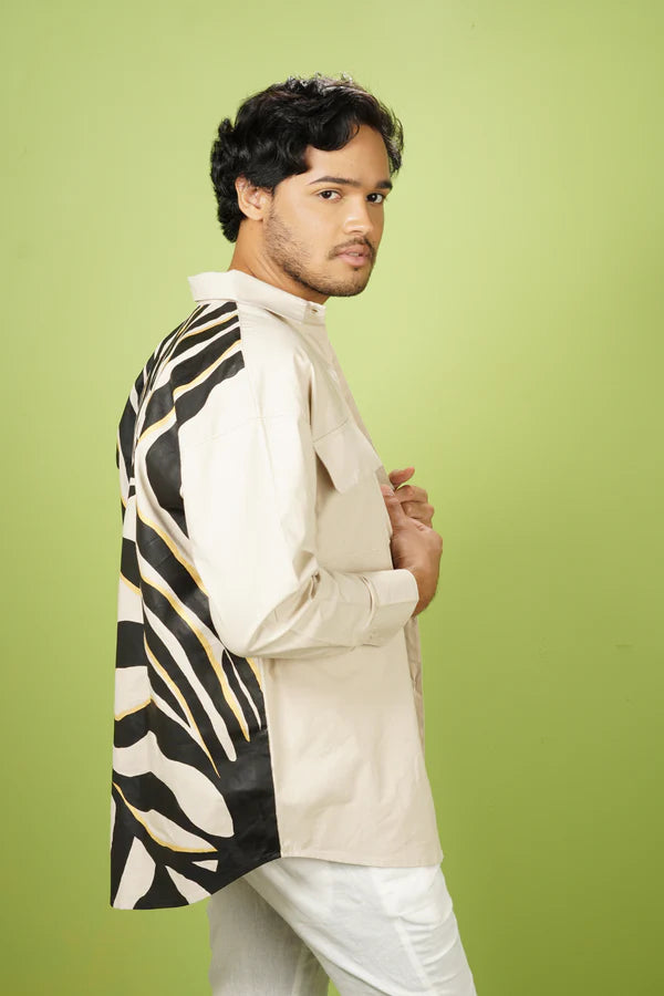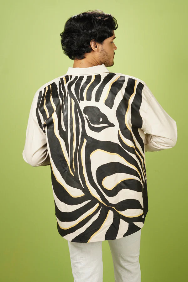 Unique animal design with vibrant colors. 100% cotton and handmade Shacket. Hand painted design. High quality non-fading paints. Durable garment. Can be machine washed and dried on delicate. Iron inside out.